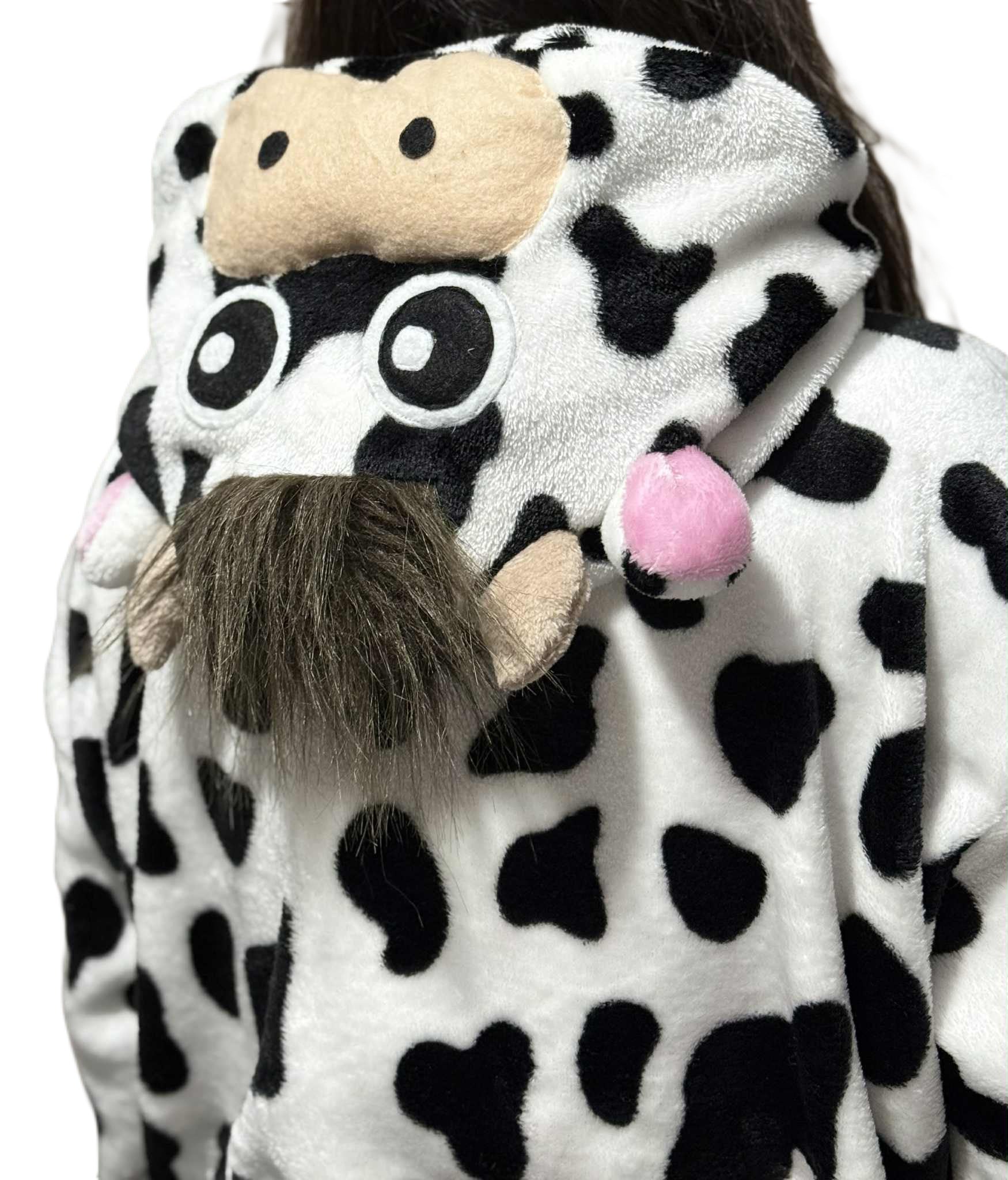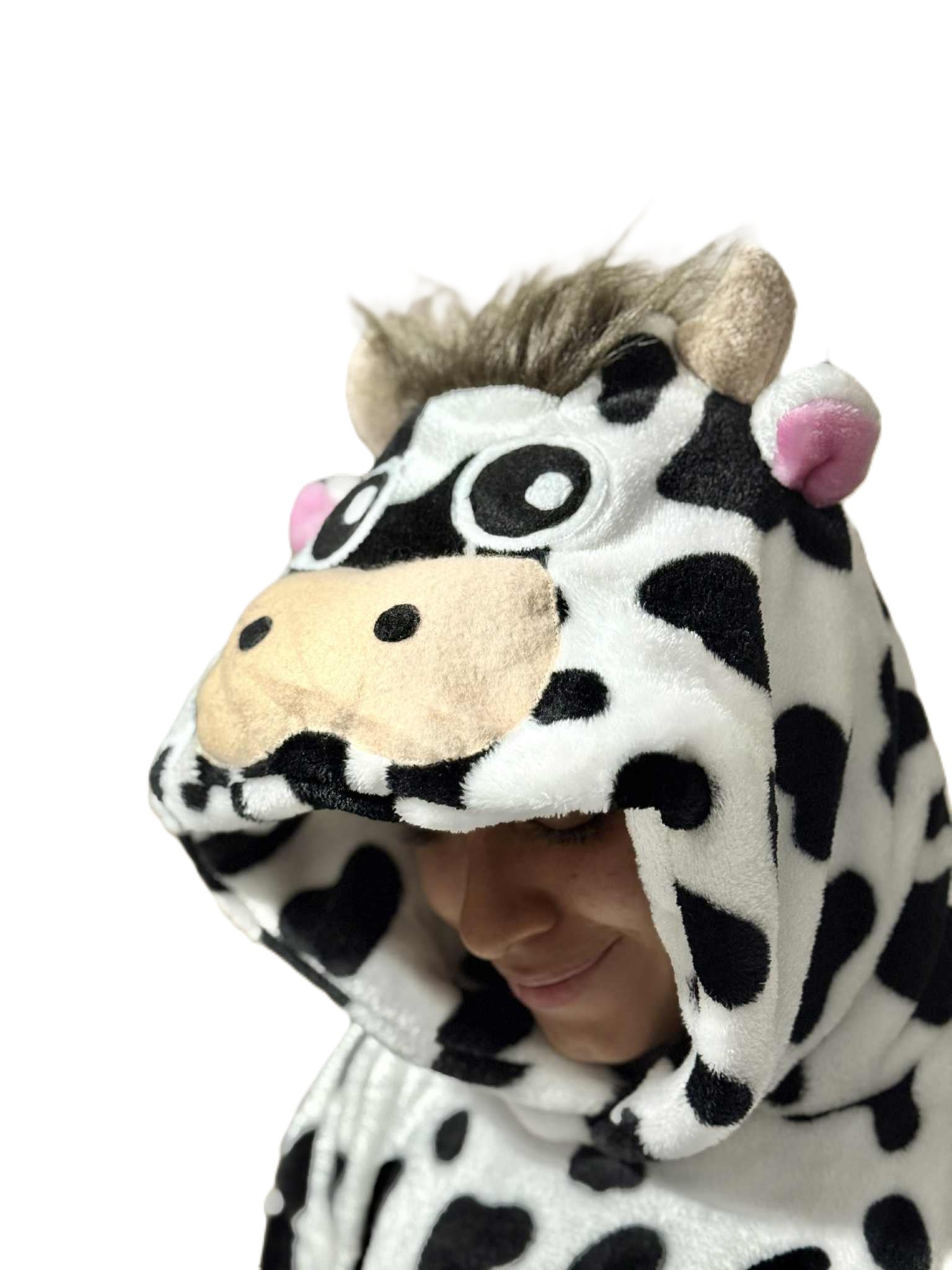 La sudadera suéter disfraz de vaca unisex es la prenda ideal para quienes buscan comodidad y estilo en un solo producto. Diseñada sin género, su forma oversized y capucha garantizan un ajuste relajado y acogedor, perfecto para cualquier ocasión. Con su tejido de flannel suave y térmico, es una opción ideal para esos días fríos o para eventos temáticos donde quieras destacarte.